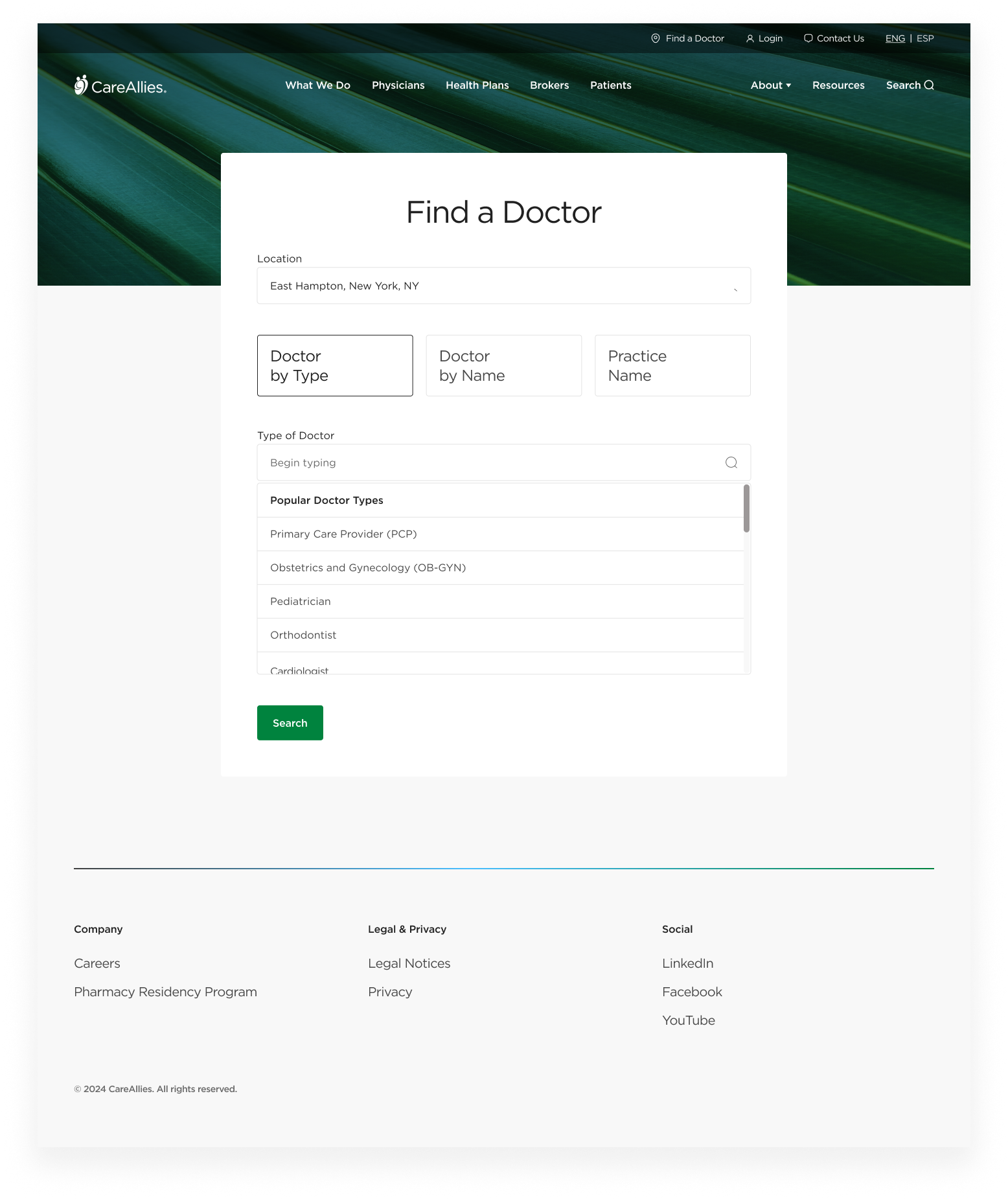 I worked in close collaboration with CareAllies stakeholders and business analysts to meticulously gather requirements and design an interface for the “Find a Doctor” experience, ensuring that it was both easy to use and intuitive. This project underscored our commitment to advancing user accessibility and elevating the quality of patient care through innovative digital solutions.