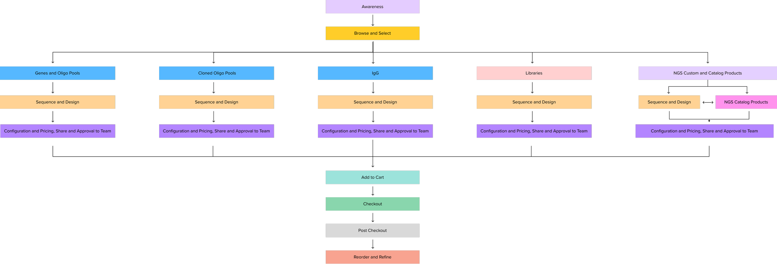 Before going into the workshop, wIe knew that the Genes and Oligo Pools flow was going to act as a foundational flow for SynBio products that could be built off to accelerate the examination of the remaining SynBio product segments. This meant that when we later went on to review IgG and Libraries I had a working knowledge of touch points that were prevalent in other areas of the flow. For products under the NGS umbrella, similar touch points were also identifiable but there was a variation in expected product needs.